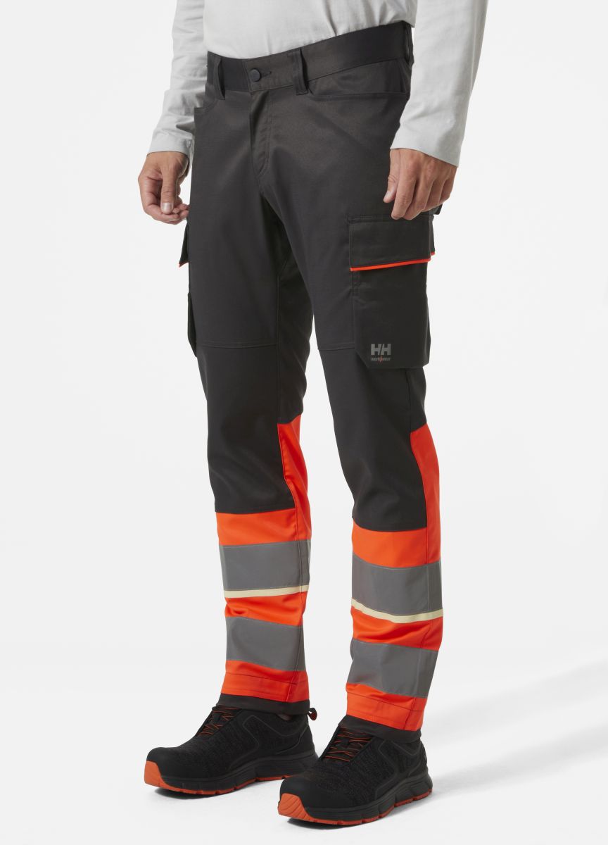 Die UC-ME Service Pant, Class 1 ist ideal für Arbeiten, bei denen Sie gut gesehen werden müssen. Breite reflektierende Streifen und leuchtendes Gewebe unterhalb des Knies bieten eine hervorragende Sichtbarkeit. Das Zwei-Wege-Stretchmaterial bietet den ganzen Tag über bequemen Tragekomfort. Der Zwickel im Schritt ermöglicht Bewegungsfreiheit und verstärkt außerdem die hochwertige Konstruktion zusätzlich. Die Beinlänge kann für eine individuelle Passform um fünf cm verlängert werden. Diese Hose ist auf lange Lebensdauer ausgelegt und verfügt über robuste Details wie Klettverschlüsse an den Oberschenkeltaschen und kunstmaterialebeschichtete Metallknöpfe. Helly Hansen entwirft erstklassige Arbeitshosen für Herren, und unsere Arbeitskleidung in Industriequalität ist mit funktionalen Details ausstattet. Eine Schlaufe für Ihren Ausweis und eine Öffnung für den Zollstock machen die Hose zu einer praktischen Wahl für die Arbeit.