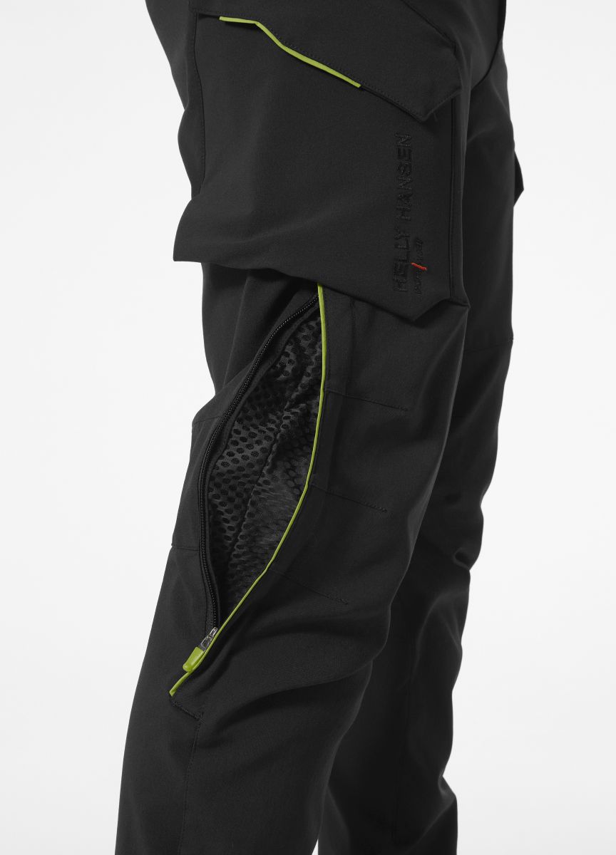 Mit den vielseitigen Cargo-Arbeitshosen von Helly Hansen Workwear sind Sie an jeder Baustelle perfekt ausgerüstet. Die Ausweisschlaufe und die vielen Taschen – darunter eine Zollstocköffnung und eine integrierte gepolsterte Handytasche – sorgen dafür, dass alles schnell zur Hand ist und dabei gleichzeitig sicher mit YKK®-Reißverschlüssen und Magnetverschlüssen an Ort und Stelle bleibt. Das Vier-Wege-Stretchmaterial und Details wie Vorgeformte Knie, ein Zwickel im Schritt und ein Bund mit Abnähern sorgen für überlegenen Komfort. Die breite Gürtelschlaufe in der Mitte des Rückens dieser überarbeiteten Cargo-Arbeitshose bietet zusätzliche Stabilität und Stärke. Cordura®-Gewebe verstärkt Saum und Knie und sorgt für verbesserte Strapazierfähigkeit. Genießen Sie maximalen Komfort mit der BRZ-Belüftung in den Seitennähten und Unterbeinen, die mit Druckknöpfen verstellbar sind. Mit klaren Linien und farblich abgestimmten Logos müssen Sie weder auf guten Stil noch Funktionalität verzichten.
