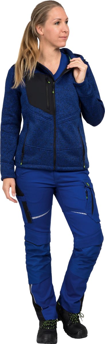 Diese stilvolle Damen-Bundhose verbindet Funktionalität mit femininem Design. Der Schnitt mit „Shapewear“ Funktion und breitem Bündchen sorgt für eine schmeichelhafte Passform. Die 3-Nadel-Steppnähte an beanspruchten Stellen bieten eine hohe Reißfestigkeit und Langlebigkeit. Reflektoren erhöhen die Sichtbarkeit und Sicherheit. Die Hose ist mit praktischen Patten mit Klettverschluss und fünf breiten Gürtelschlaufen ausgestattet. Der Hosenschlitz hat einen Qualitätsreißverschluss, während ein Keil im Schrittbereich die Beweglichkeit verbessert und das Ausreißen der Nähte verhindert. Längsriegel halten das Kniepolster sicher an Ort und Stelle. Die Hose bietet zahlreiche Taschenlösungen, darunter Eingriff- und Gesäßtaschen, eine doppelte Maßstabtasche sowie eine Cargotasche. Die spezielle Volumenknietasche aus robustem Material ist für separate Kniepolster vorgesehen. Aus einem Mix aus Baumwolle, Polyester und Elasthan gefertigt, ist die Hose strapazierfähig und komfortabel. Sie ist gemäß EN 14404 Typ 2, Level 1 zertifiziert und nur in Kombination mit dem Kniepolster Art.-Nr. LWKSAB zu verwenden. Pflegeleicht, waschbar bis 60 Grad, bügel- und trocknergeeignet, ist diese Bundhose ideal für den professionellen Einsatz.