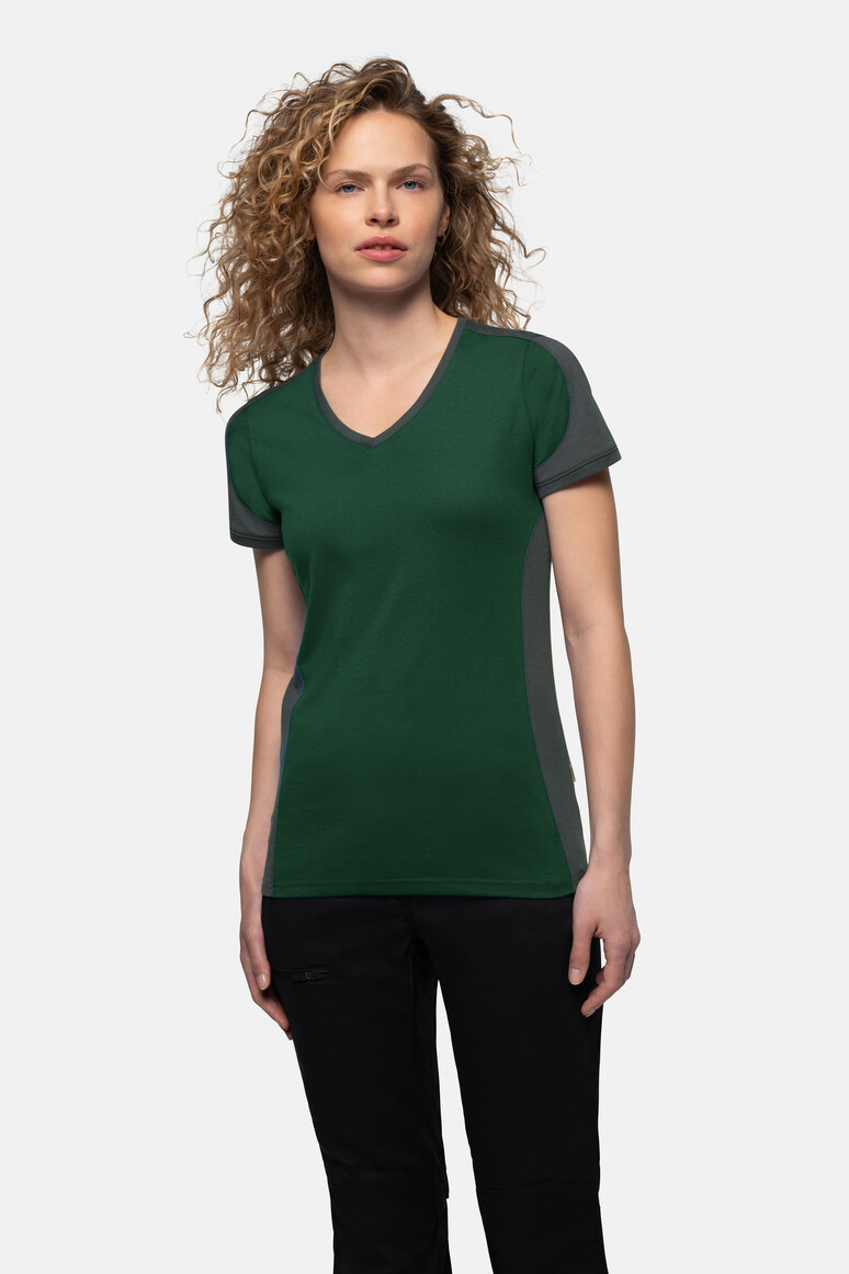 HAKRO 190 Damen V-Shirt Contrast MIKRALINAR® in Tanne/Anthrazit, Größe M