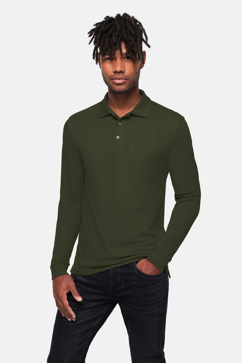 HAKRO 817 Pocket-Longsleeve-Polo MIKRALINAR® ECO in Olive, Größe 4XL