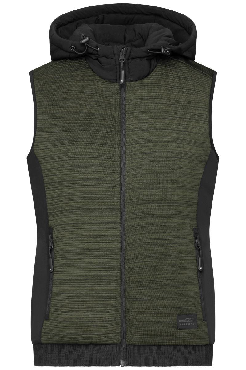 JN1847 Damen gefütterte Hybrid Weste in Olive-Melange / Black, Größe L von James & Nicholson