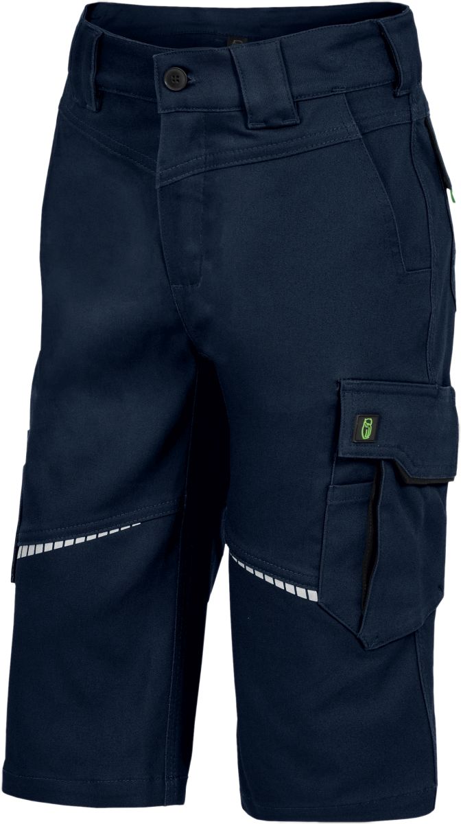 Diese Kinder-Shorts in 3/4 Länge sind perfekt für aktive Kinder, die viel draußen spielen und entdecken. Der atmungsaktive Stretchstoff sorgt für Bewegungsfreiheit und ist gleichzeitig robust genug, um dem Alltag von Kindern standzuhalten. Der gerade Schnitt und das verstellbare Lochgummiband im Bund sorgen für eine bequeme und anpassbare Passform. Die speziellen 3-Nadel-Steppnähte erhöhen die Reißfestigkeit, während die Reflektoren für eine verbesserte Sichtbarkeit sorgen. Die Patten mit Klettverschluss und die robusten Taschen machen die Shorts ideal für den Außenbereich. Mit verschiedenen Taschen, darunter eine doppelte Maßstabtasche und Cargotaschen, bietet die Hose genügend Stauraum für kleine Schätze. Die Shorts sind pflegeleicht, bei 60 Grad waschbar und sowohl bügel- als auch trocknergeeignet, was sie zu einem unverzichtbaren Kleidungsstück im Kinderkleiderschrank macht.