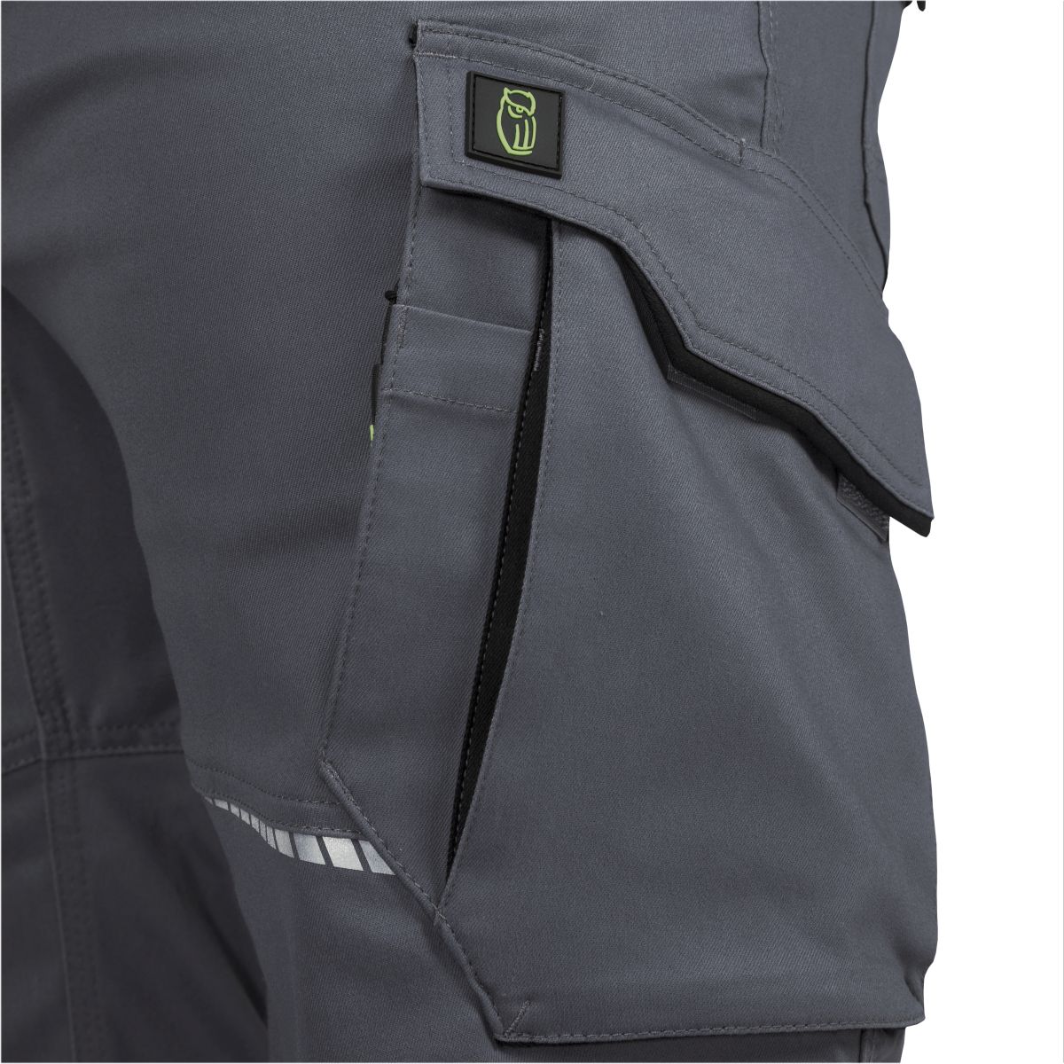 - Cargotasche mit 2 Fächern sowie einer Reißverschluss-Einschubtasche und einer Stifttasche am linken Bein