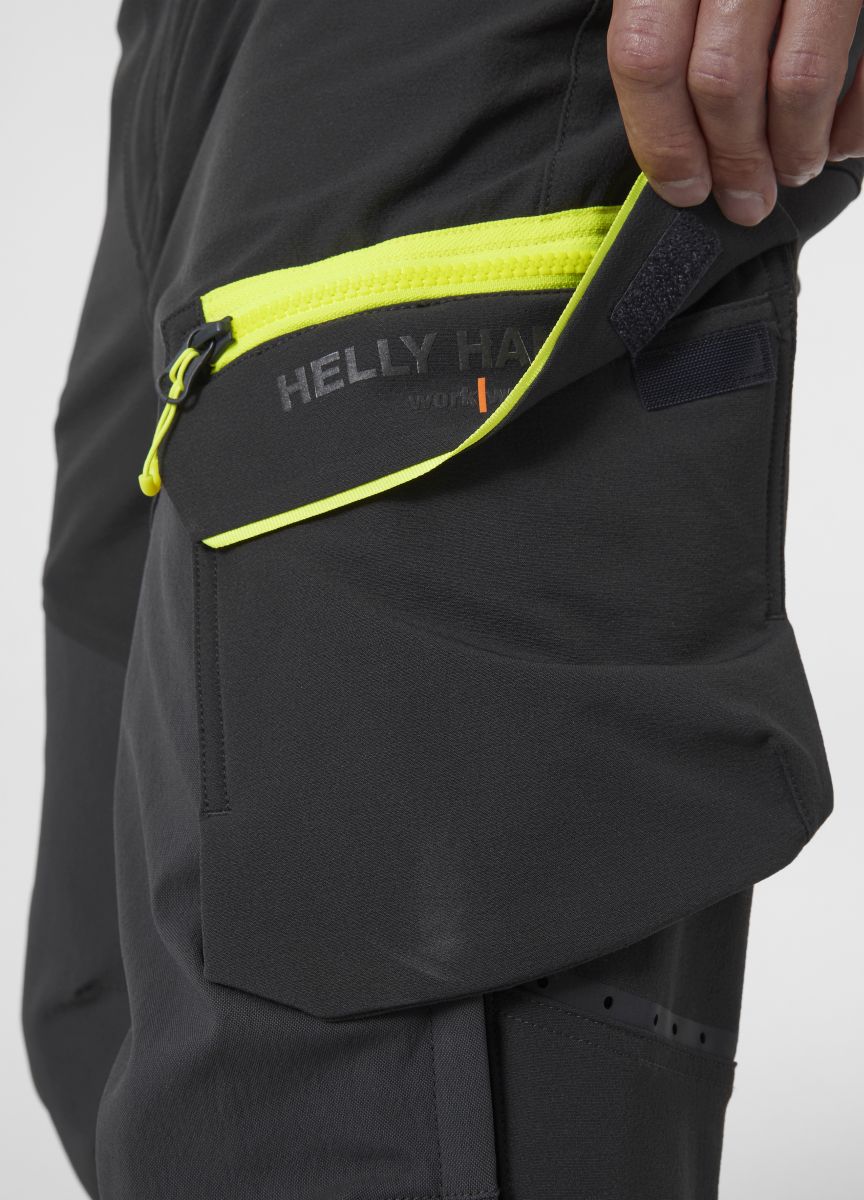 Mit der Helly Hansen ICU BRZ SERVICE PANT CLASS 1 arbeiten Sie bequem in Innenräumen und während der Sommermonate. Diese Cargo-Arbeitshose ist Teil eines neuen Workwear-Fokus, der auf Komfort und Bewegungsfreiheit ausgerichtet ist. Die Belüftung in den Seitennähten und lasergeschnittene Belüftungslöcher im Rücken halten Sie kühl. Vorgeformte Knie, ein Zwickel im Schritt und Vier-Wege-Stretchmaterial sorgen dafür, dass Ihre Arbeitskleidung jeder Bewegung folgt. Zu den gut durchdachten Funktionen gehören eine breite Gürtelschlaufe im Rücken für mehr Stabilität und Beinabschlüsse, die mit Druckknöpfen verstellbar sind. Hochwertige Details wie YKK®-Reißverschlüsse, ein Klettverschluss an der Oberschenkeltasche und beschichtete Metallknöpfe sorgen für zusätzliche Strapazierfähigkeit. Weitere Ergänzungen bei dieser Arbeitshose sind eine integrierte Handytasche, ein Schlitz für den Zollstock und eine Kartenschlaufe für den Ausweis. Die Beinlänge kann für eine bessere Passform um fünf cm verlängert werden. Mit elastischer Cordura®-Verstärkung an Knien und Saum ist die ICU BRZ eine strapazierfähige Hose, die jahrelang hält.