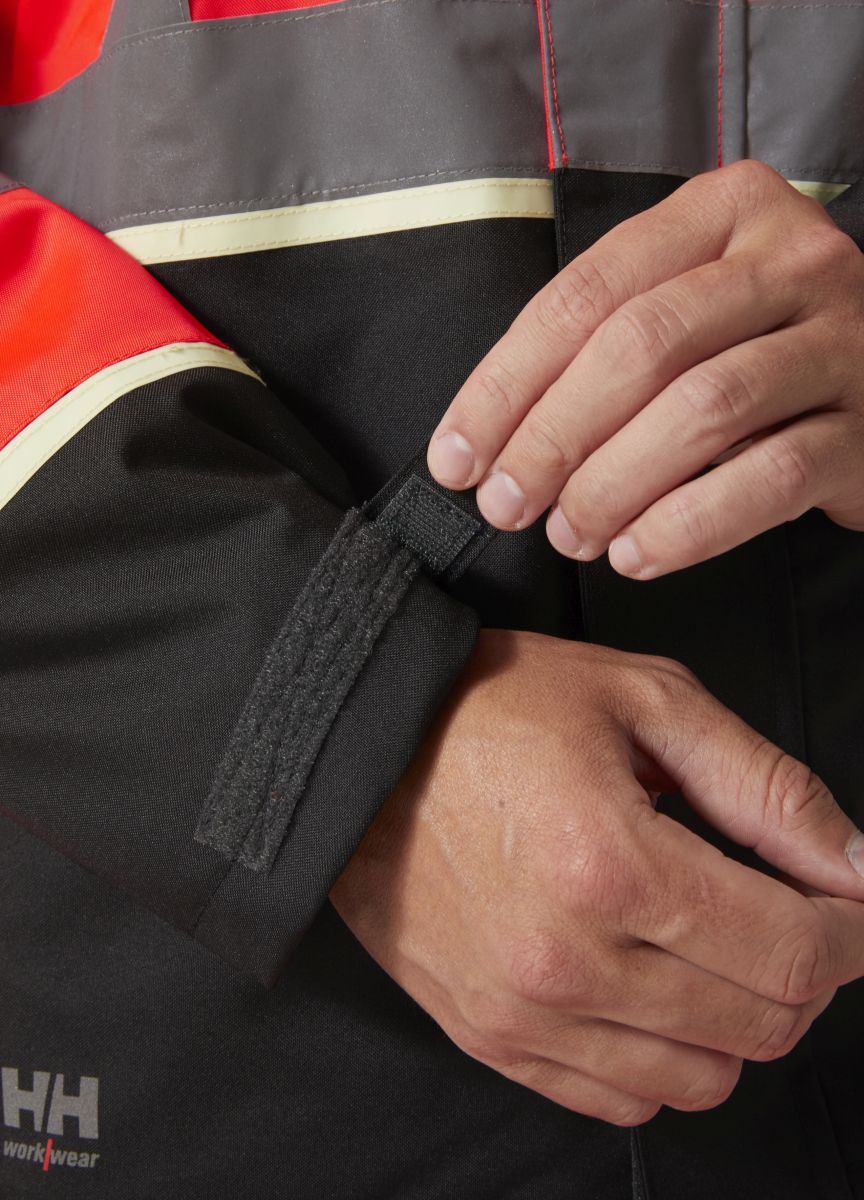 UC-ME Winter Jacket ist eine Jacke, die leichtes Material, funktionales Design und clevere Details für eine überragende Leistung auf der Baustelle im Winter kombiniert. Vorgeformte Ärmel mit nahtlosen Schultern und verlängertem Rücken sorgen für Komfort und Bewegungsfreiheit. Die Passform kann mit vertikaler und horizontaler Kapuzenverstellung sowie verstellbarem Saum und Ärmelbündchen angepasst werden. Die abnehmbare Kapuze ist helmkompatibel und bietet Sicherheit und Vielseitigkeit. Der elastische Kordelzug am Saum wird über die Tasche verstellt. So wird die Gefahr eines potenziellen Hängenbleibens ausgeschlossen. Reflektierende Streifen auf dieser Warnschutz-Winterjacke erhöhen die Sicherheit. Dank dem gepolsterten Kragen und dem Kinnschutz genießen Sie den ganzen Tag lang bequemen Tragekomfort. Sowohl der Kragen als auch die Einschubtaschen sind mit gebürstetem Polyester gefüttert. Persönliche Dinge sind in den Taschen mit YKK®-Reißverschluss, in der Brusttasche und an der Ausweisschlaufe stets griffbereit.